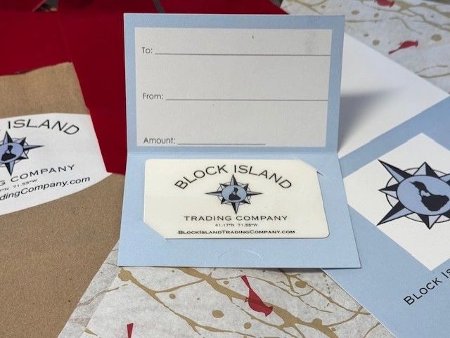We will send one of our new custom Block Island Trading Company gift cards inside one of our beautiful store cards with your special message. Wrapped in our custom tissue paper, a thoughtful alternative for the hard to shop for. Our new gift cards work just like a credit card and are re-loadable, too! Gift Cards ship